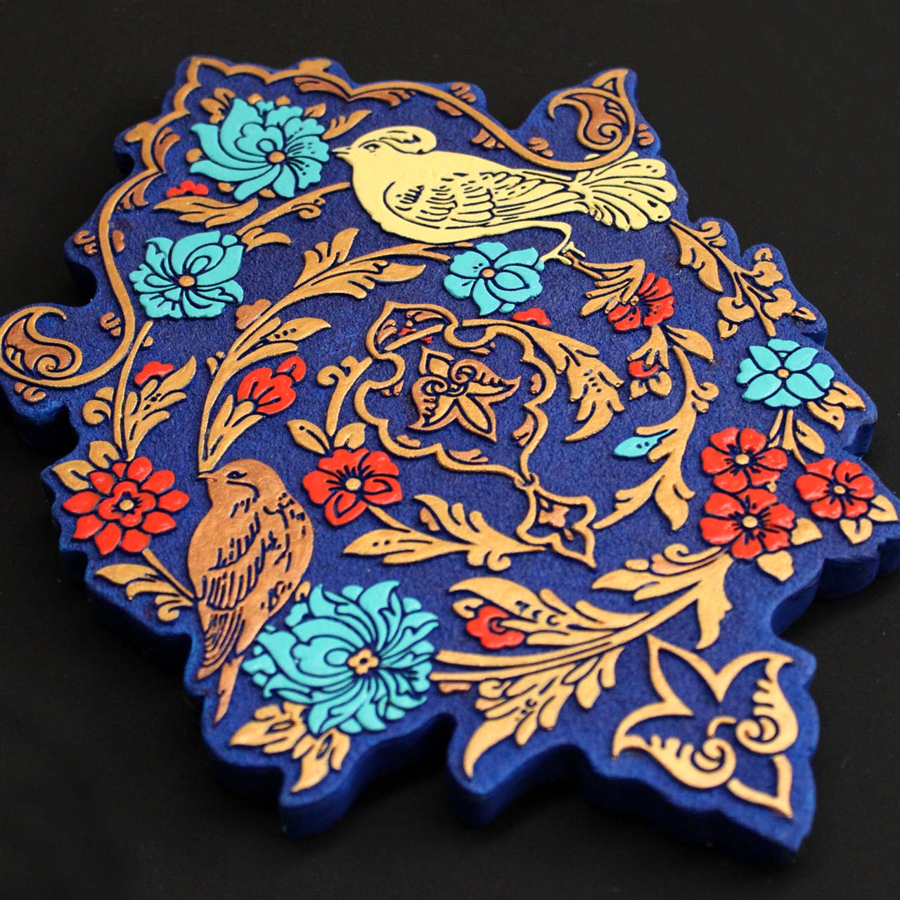 در این لوح نقش برجسته، گل و مرغ نماد موهبت الهی و تجلی ظریف و لطیف آفریدگار است. گفتگوی عاشقانه گل و مرغ نیز به تسبیحگویی خداوند و ذکر حق تشبیه میشود. گل مقام معشوق را دارد و پرنده (مرغ)، عاشق. همچنین نامگذاری گل به اسم گل محمدی نشان دهنده ارتباط و هماهنگی با فرهنگ اسلامی و متبرک شدن به نام پیامبر رحمت للعالمین و عطر خوش گل محمدی است.